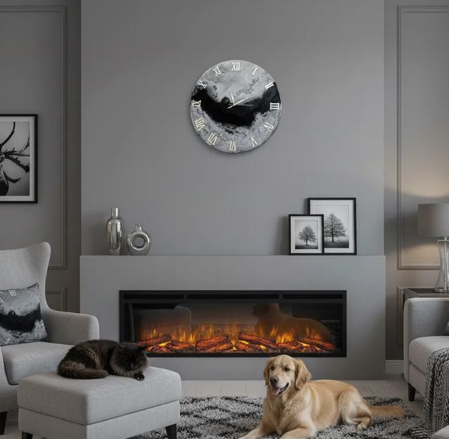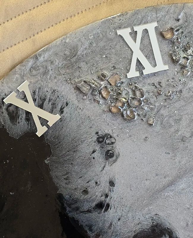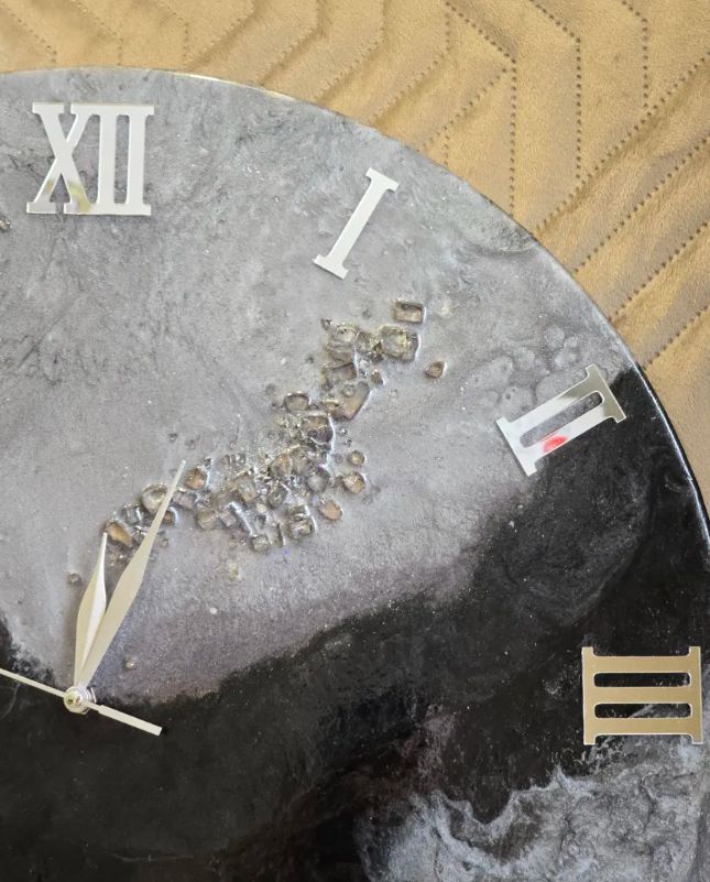 Премиальные материалы: Основной материал — высокопрочная эпоксидная смола с идеально ровным глянцевым финишем, напоминающим стекло. Поверхность защищена от царапин. Вкрапления натурального горного хрусталя придают часам благородный рельеф.
