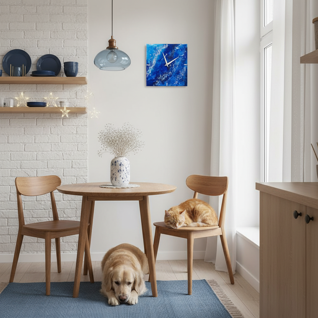 Практичность: Эпоксидная смола не боится влаги и перепадов температур. Поверхность устойчива к царапинам, легко протирается от пыли. Можно размещать на кухне и в ванной.
