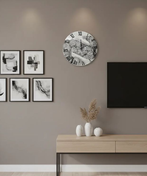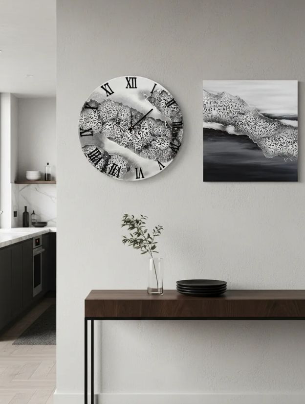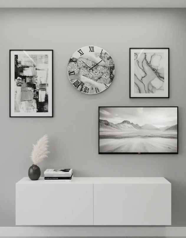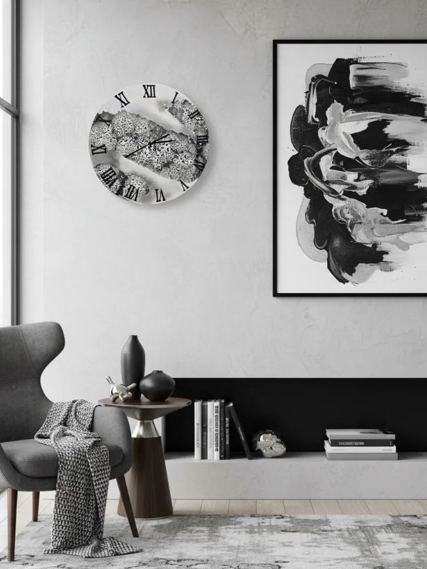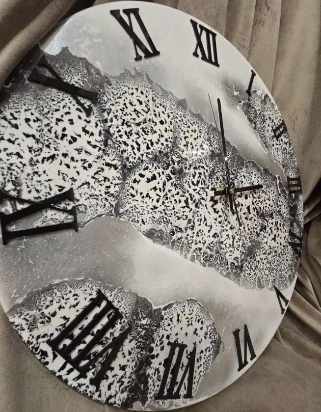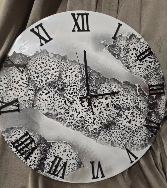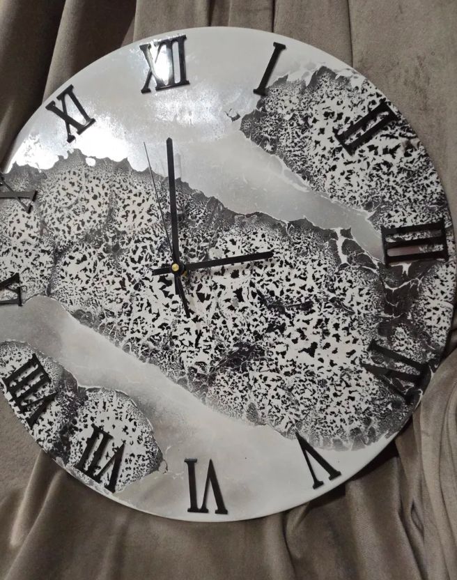 #часынастенные #часыручнойработы #эпоксиднаясмола #часыподарок #часывинтерьер #чернобелыечасы #часысеребро #часыримскиецифры #дизайнерскиечасы #хендмейд