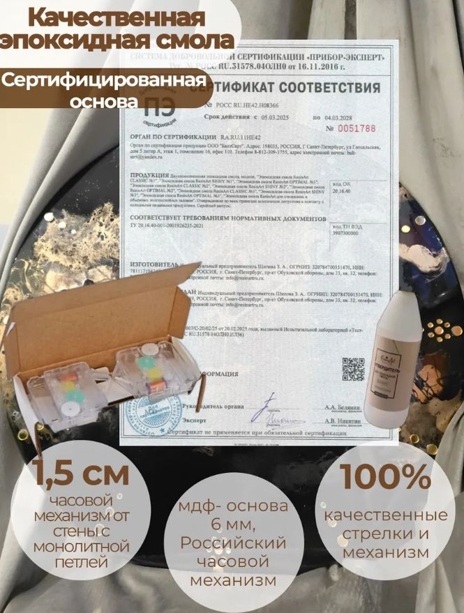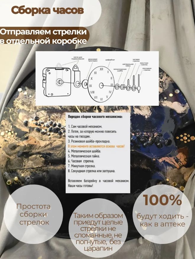 Надежная основа: Часы изготовлены на прочной МДФ-панели толщиной 6 мм, что гарантирует долговечность и устойчивость.